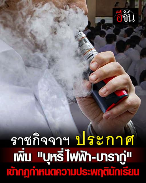 ราชกิจจาฯ ประกาศเพิ่ม “บุหรี่ไฟฟ้า-บารากู่” ในกฏกระทรวง