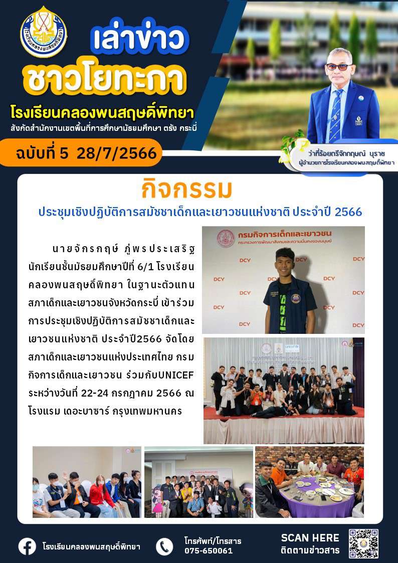 เข้าร่วมการประชุมเชิงปฏิบัติการสมัชชาเด็กและเยาวชนแห่งชาติ ประจำปี2566